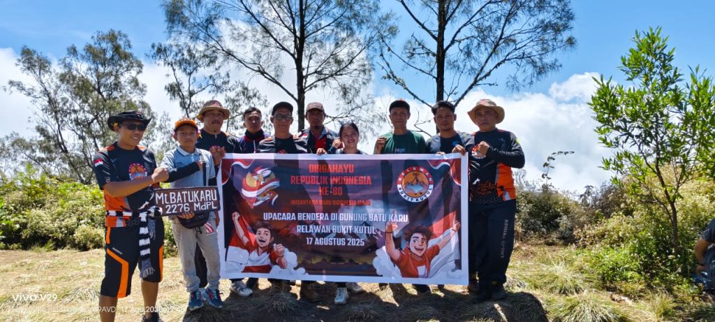 Dalam Rangka memperingati HUT RI yang ke 80 Relawan Bukit Kutul beserta 11 anggota mengadakan kegiatan Upacara Bendera di Puncak Gunung Batukaru, dengan semangat dan kebersamaan kita dapat melaksanakan kegiatan tersebut dengan lancar dan tanpa halangan, keberangakatan pendakian di mulai pukul 08.00 dari pura malen, dan sampai di puncak kedaton pukul 12.00 siang. setelah makan siang kita melaksanakan kegiatan upacara bendera, setelah itu kita melaksanakan persembahyangan bersama dan dilamjutkan dengan foto foto bersama untuk mengenang kebersamaan kita selama perjalanan